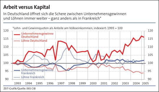 Die Diskrepanz zwischen binnenmarkt- und exportmarktzentrierter Wirtschaft hat Konsequenzen für den Wohlstand der Nation wie folgende Grafik verdeutlicht: