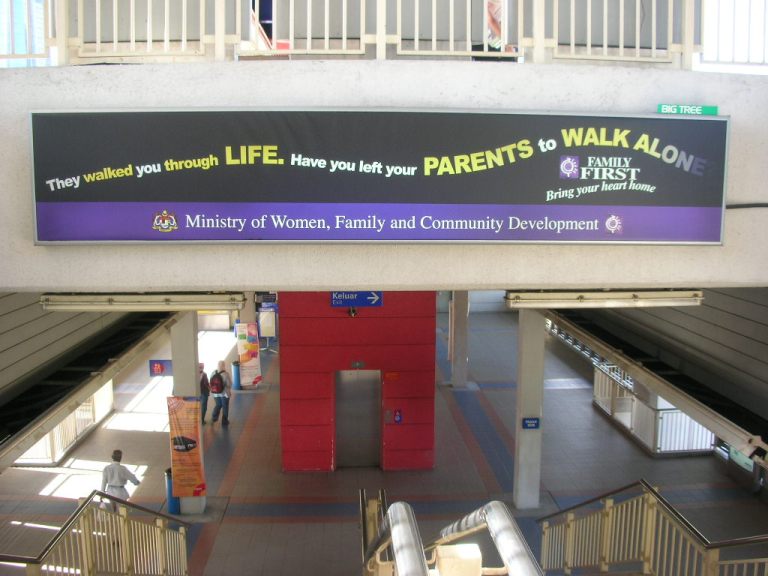 Aufruf zu innerfamiliärer Solidarität. Werbetafel des Familienministeriums in Malaysia (musl.).